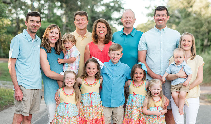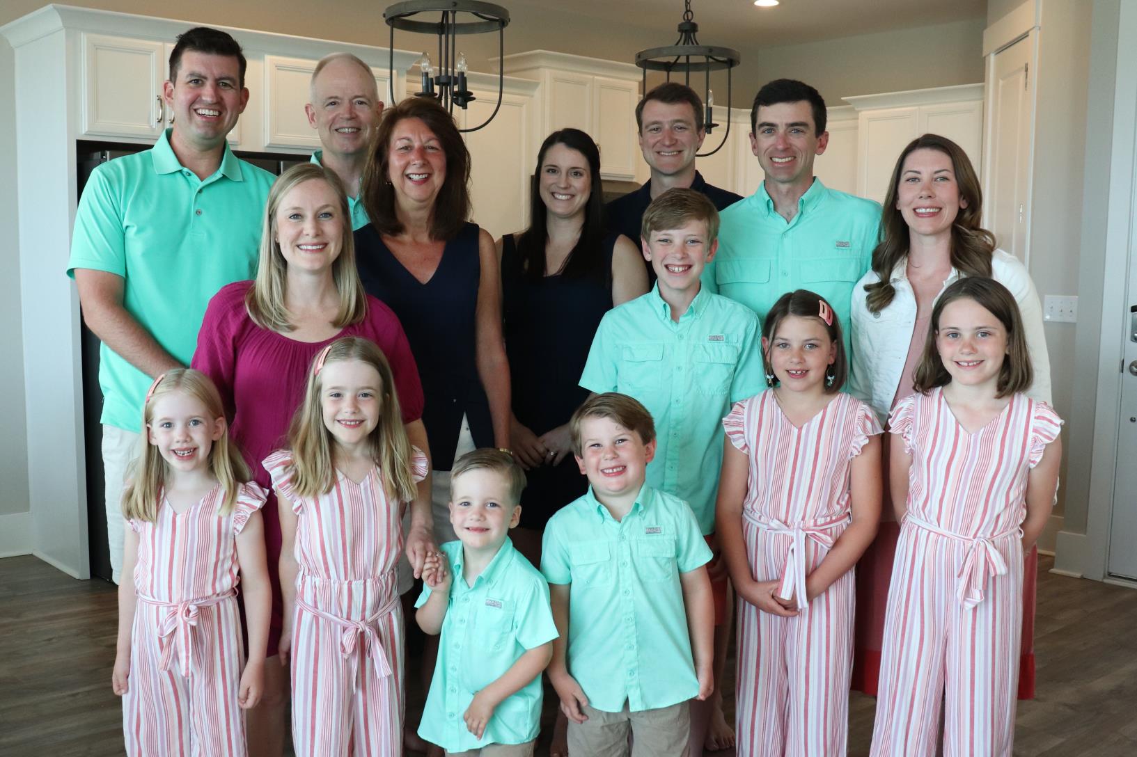 Back row (l-r): Kevin Harward, Lara Harward holding Grady, Philip Harward, Ellen Harward, Scott Harward, Michael Harward, Laura Beth Harward holding Andrew.