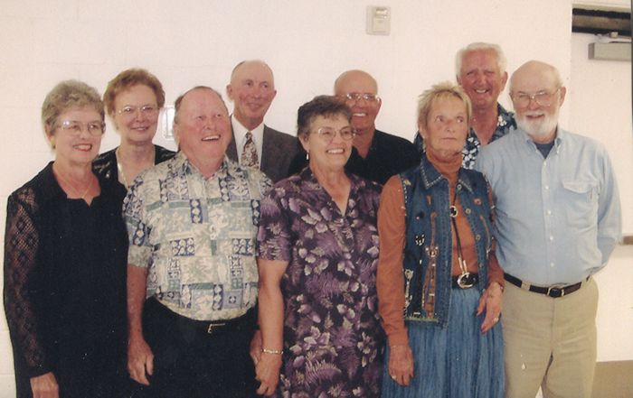 Reunion 2003: (l-r) Edna Fletcher, Joyce Daugherty, Jack Hubbard, Jim Mohan, Regina Boettger, Fred Palmer, Carol Allen, Ray Bowyer, Don Gotschall