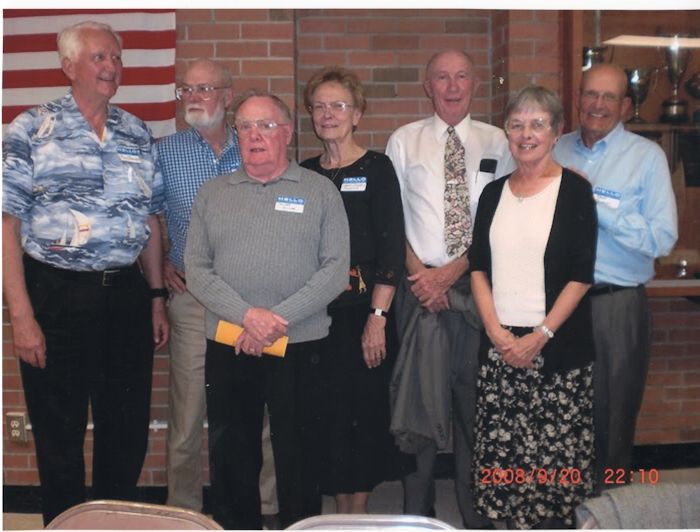 Reunion 2008: Back row (l-r) Ray Bowyer, Don Gotschall, Joyce Daugherty, Jim Mohan, Fred Palmer; Front row (l-r) Howard Miller, Edna Fletcher